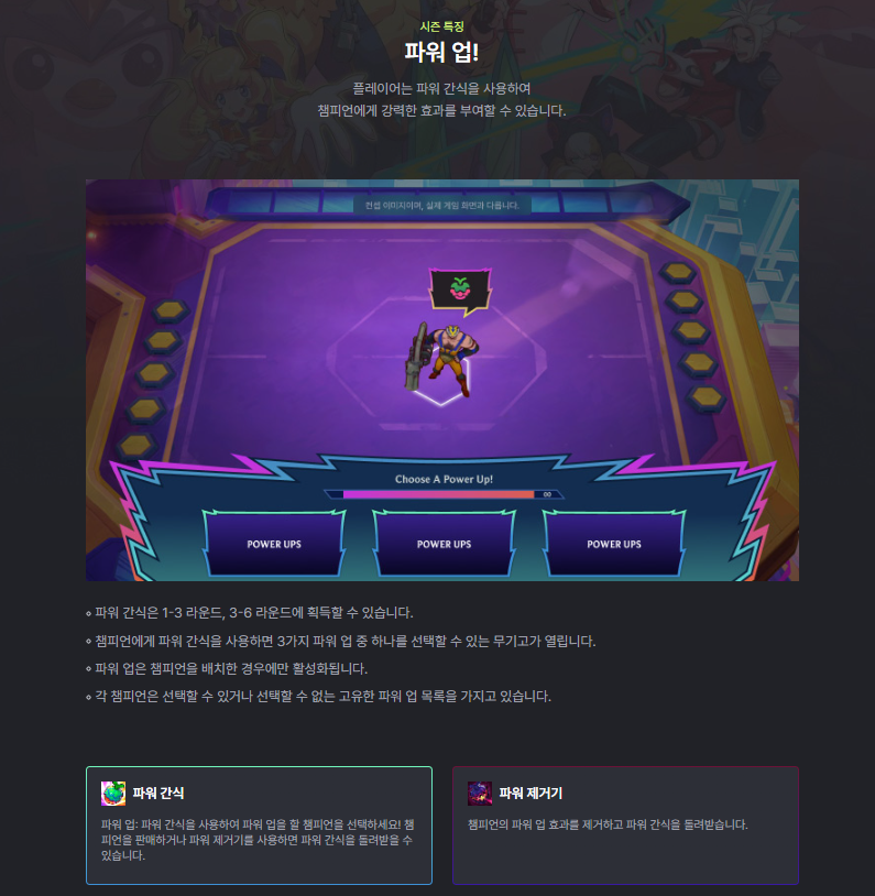 이는 13시즌에 존재했던 이상현상 시스템과 유사하며 챔피언에게 파워 간식을 통해 추가 능력을 제공한다.