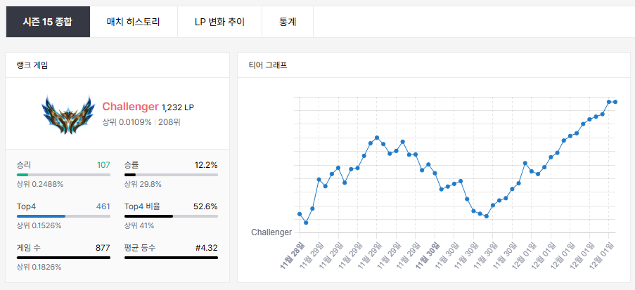 결국에는 12월 2일까지 챌린저를 유지하게 되었다.